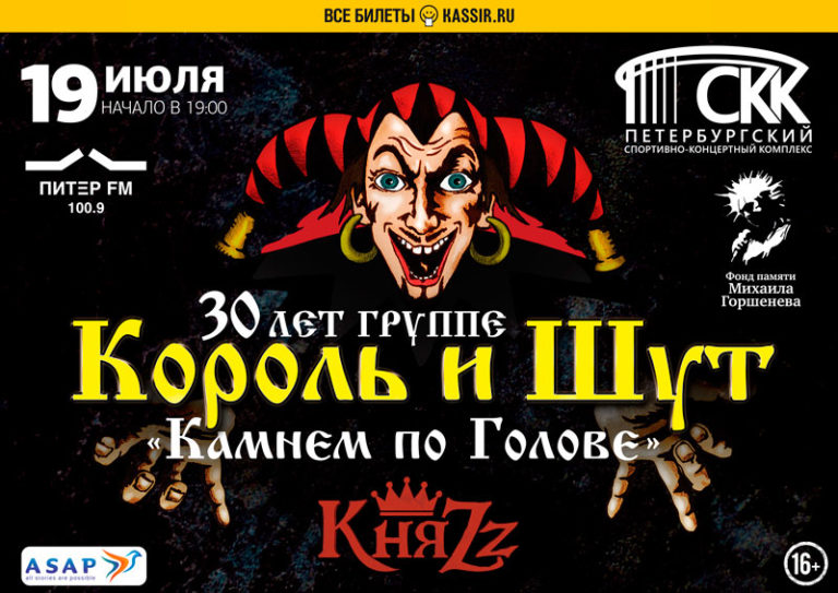 Ждём всех поклонников «Короля и Шута» 19 июля в Петербургском СКК на большом концерте, посвящённом Михаилу Горшенёву и 30-летию легендарной группы!