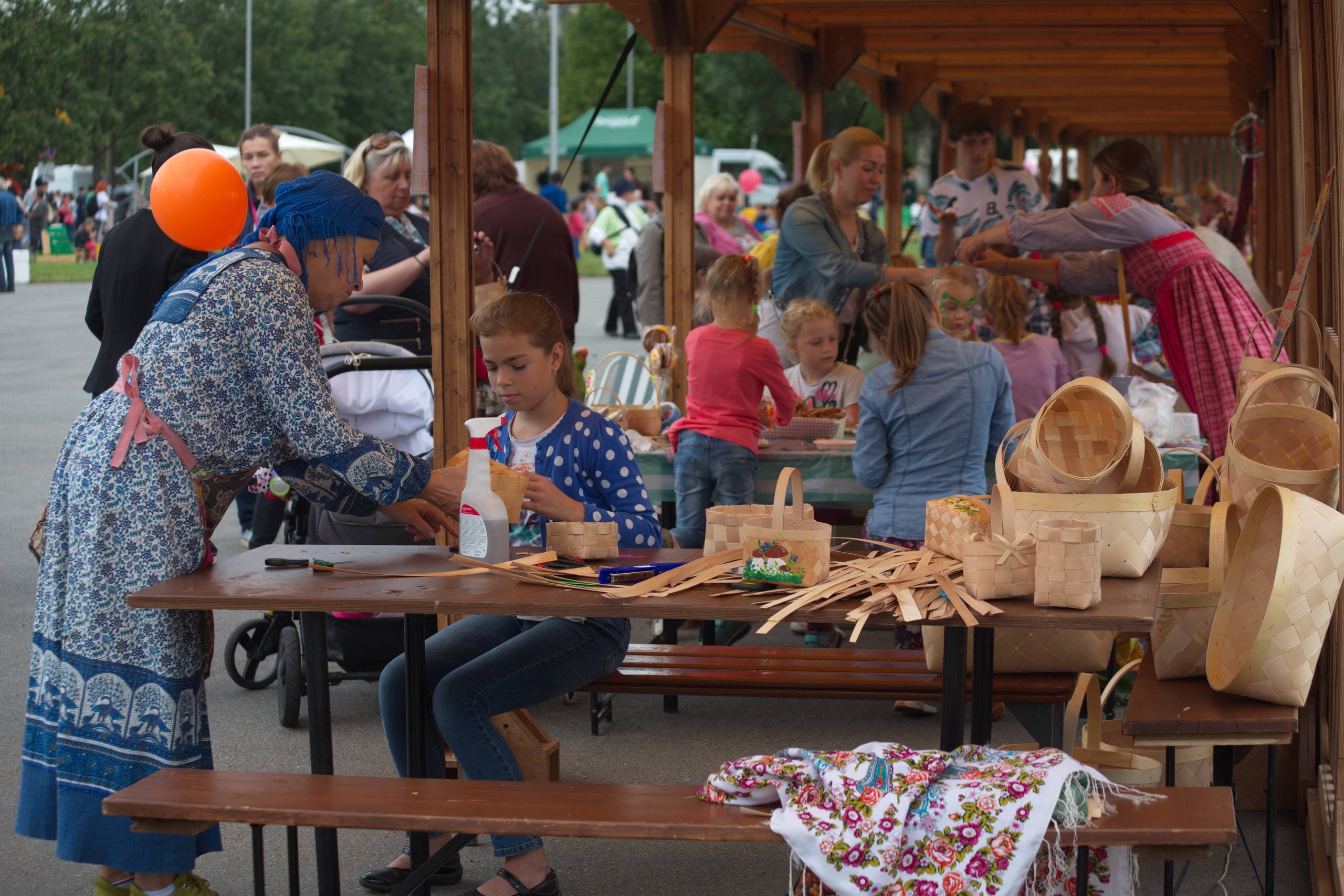 На площадке «Экоремесло» петербуржцев обучали тонкостям таких искусств, как художественная роспись по дереву и керамике, пряничная роспись, плетение из бересты, традиционное создание кукол из лыка и мн. др. Отрадно было видеть большое количество учеников — как взрослых, так и детей.