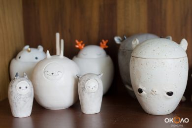 Этот проект (показывает на предметы посуды в виде животных) называются «Mammal», что означает в переводе – млекопитающие. Изначально так назвала просто потому что люблю молоко, оно белое, вкусное (улыбается). А потом всё начало формироваться в концепцию, чтобы сделать такие предметы быта и посуду, которые можно было бы использовать, чтобы они были и удобные, и красивые. Эти ребята – это не конкретные звери, а образы зверей. Может быть, я чуть-чуть «инопланетянского» в них добавила. Основная идея такова, что это некие предметы быта, но при этом они звери, они живые, и они – твои друзья. В локальном плане, те предметы, которые находятся с тобой в одном доме, у тебя на кухне, которые ты используешь, должны быть к тебе дружески настроены, а ты – к ним. Они должны тебя радовать и не быть пустотой, которую ты можешь выкинуть, и которая тебе совершенно безразлична. Цель- создать некий интерактив с предметами. У меня есть друг, Ирина Скорева, это человек широкой мысли, и она сейчас пишет сказки об этих персонажах, так мы хотим эту интерактивность запустить, создавая истории предметам, наделяя их характерами.