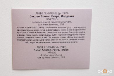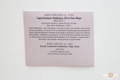 Девять работ, входивших в экспозицию «Анни Лейбовиц. Жизнь фотографа. 1990–2005» и переданных в дар музею, представил заведующий Отделом современного искусства Государственного Эрмитажа, руководитель Проекта «Эрмитаж 20/21» Дмитрий Озерков. Показом работ Энни Лейбовиц Отдел современного искусства Государственного Эрмитажа начинает демонстрацию новейших приобретений, приуроченную к 10-летию проекта «Эрмитаж 20/21».