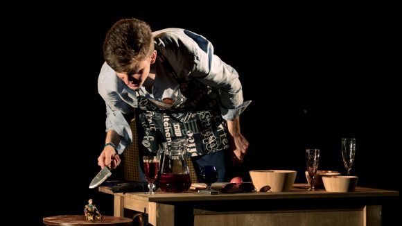 “Осовременивая” Вертера, режиссёр в этом уравнении выносит за скобки всё, кроме самого героя и его всепоглощающей, разрушительной любви к даме сердца: даже возлюбленная Лотта в исполнении Анны Слынько присутствует в спектакле по большей части в качестве силуэта на арьерсцене, а её жених Альберт, более того, стал реквизитом, пластиковой игрушкой. Сценография спектакля кажется простой, но при ближайшем рассмотрении весьма разнообразна и причудлива: подвешенные к потолку книги, видеокамера, рыцарский меч, целый ящик игрушечного оружия и свежие овощи.