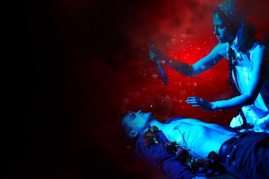 Сохранив первоначальный стихотворный текст и дополнив его вокальным исполнением, режиссёр создаёт местами гротескную, провокационную и чувственную драму о любви и жертвоприношении. Необычное рваное повествование – открывается спектакль финальной сценой, дальше действие раскручивается по спирали, в виде воспоминаний с флэшбеками – подчёркивает кинематографичность спектакля. Завладевая вниманием зрителя и не отпуская его ни на минуту, актёры акцентируют внимание на предметах-символах, создавая безупречные крупные планы-кадры.