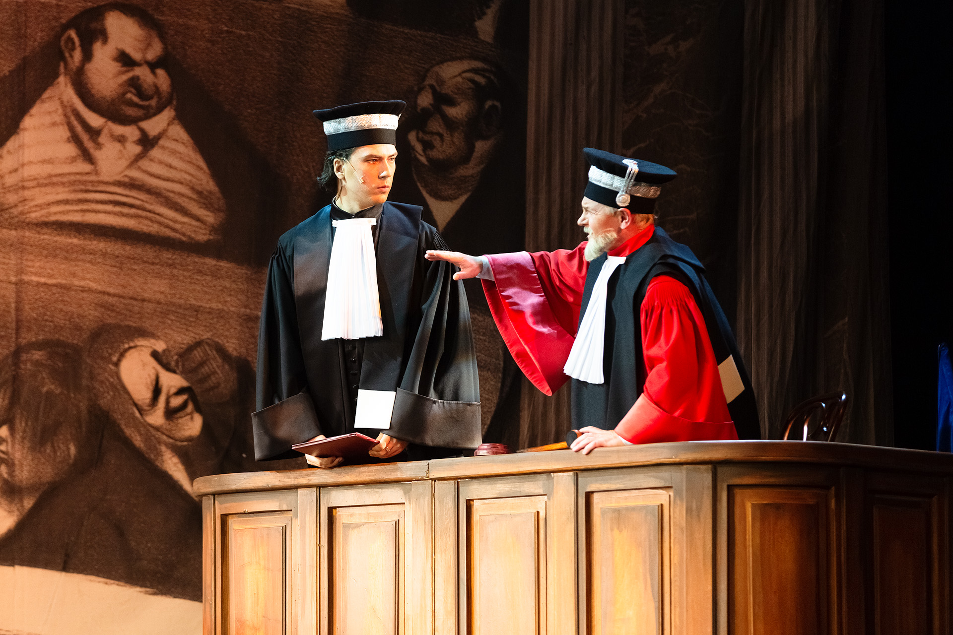 Одной из «темных лошадок» спектакля являлись декорации: в одном из интервью художник по декорациям Тамаш Ракаи рассказал о том, что часть зрительного зала станет продолжением сцены. Представить это было сложно. Однако в реальности все выглядит более чем интересно! Благодаря грамотному задействованию выступающей части декораций, у зрителя действительно появляется чувство сопричастности к происходящему.