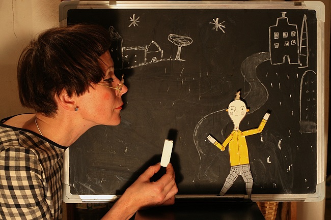 Светлана Бень – актриса, театральный режиссер, поэтесса, музыкант, лидер музыкального коллектива «Серебряная свадьба» и создательница театра «Картонка». «Волшебный мелок» — постановка, созданная по мотивам сказки норвежской писательницы Синкен Хопл. Синкен – это детское прозвище Сигне Мари Брокманн – автор сборников стихотворений «Вид на горную равнину», «Кухонные стихи» и других. Наибольшую популярность ей принесли сказочные повести о Юне и Софусе «Волшебный мелок» и её продолжение, «Юн и Софус». Повести были переведены на несколько языков.