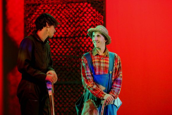 Однозначный плюс постановки – юмор. Эпизодические персонажи, периодически выбегающие на сцену, были великолепны. Например, зажигательная спичка, барсуки с «дефектами фикции» и, конечно, ворон, словно сошедший с экрана фильма в духе Тима Бертона.