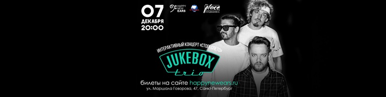 Акапельное трио Jukebox даст большой сольный интерактивный концерт в клубе The Place 7 декабря. Музыканты, последнее время редко выступавшие в северной столице, привезут в Петербург новую программу «Стоп!Спето», состоящую из выбранных поклонниками группы актуальных мировых хитов и лучшего в авторском творчестве коллектива.