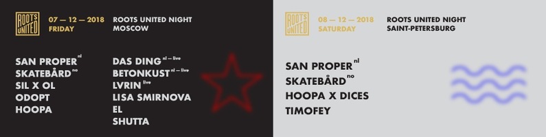 Продолжением уикенда станет вечеринка от Roots United 8 декабря в Петербурге, куда вместе с резидентами отправятся главные звезды московской ночи – Skatebård и San Proper. Место действия – клуб BLANK.