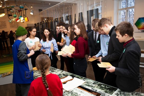 Но в зале с выставкой «Как это работает» есть ещё много всего, и команда отправляется дальше. И вот уже ребят учат вдумчивому чтению, они играют со словами из сказки и составляют из них предложения, бросая по порядку кубики в прозрачный резервуар. Так можно понять, сколько слов может поместиться в одной кубической минуте текста. Развивается и образное мышление: детям предлагают найти на интерактивном столе с картинками те, которые подходят сказке про Буратино, и нажать на кнопки, чтобы загорелись лампочки. Но и это ещё не всё — вы только представьте: на стене висят старинные деревянные часы — такие, наверное, были в доме Мари Штальбаум. А внутри спрятались чудеса — сюжеты с любимыми героями.
