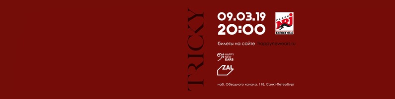Если вы соскучились по Tricky (последний раз в Петербурге он был в начале 2016 года), а также хотите увидеть наконец, как артист повзрослел — приходите в клуб ZAL 9 марта 2019 года.
