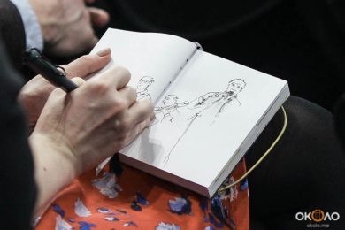 Беседа не велась всухую, то и дело И. Иофф радостно жал на кнопку и показывал собравшимся свои любимые работы И. Максимова: «Болеро», «Дождь сверху вниз» и, конечно, самое родное «Дивергенция Д», мультик, нарисованный Максимовым про Дивертисмент. Сходство с реальными музыкантами, конечно, очевидно, а может и нет никакого сходства, показалось. Но вот он, выплывающий на кораблике многорукий худрук (Илья Иофф), вот еще на одном кораблике бессменный концертмейстер оркестра и солистка (Лидия Коваленко), вот пианист, который и без рояля весь в музыке (Михаил Блехер), вот и остальные существа сказочного мира со своими музыкальными крендельками, палочками и гигантской тубой стекаются по улицам совершенно реального дождливого Петербурга, чтобы играть для слушателей концерт.