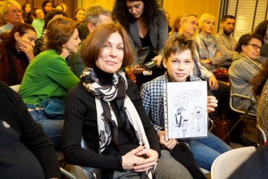Новое чтиво для взрослых с хорошим чувством юмора выйдет уже летом в издательстве «Эксмо». Сказки вызывали взрывы смеха в зале, и кто-то явно узнавал в этих сказках своих знакомых, а то и самих себя. После занимательных сказок для взрослых пришло время взрослых мультфильмов. Легендарный анимационный образ «Петрович», созданный Бильжо, шагнул с иллюстраций в анимационные сюжеты. Оказалось, что создано их уже порядка 100 штук и некоторые из них предстали на суд зрителей литературно-музыкального клуба. «Петровича могли бы привлечь к ответственности за оскорбление всех!»,- пошутил после просмотра мультиков Виталий Дымарский.