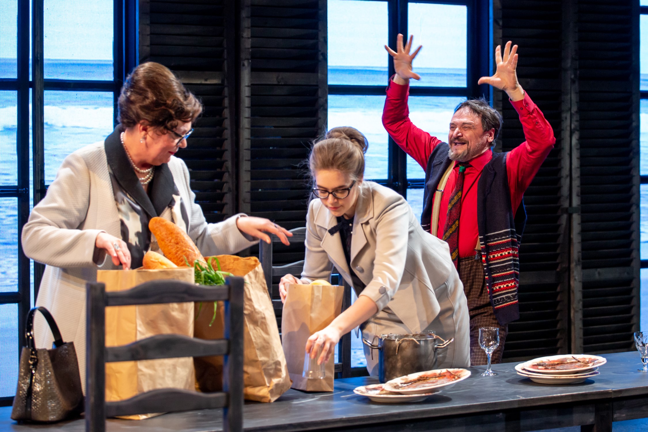 Дополнительную глубину спектаклю придает вид из окон дома семьи Юлии. Благодаря мультимедийным эффектам перед нами расстилается безбрежное море, которое меняет свое «настроение» в унисон с чувствами героев. Особенный трагизм, однако, ощущается даже не ночью, когда происходит развязка, а на следующее утро…