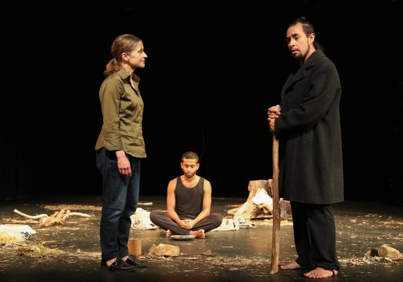 В прямом смысле пустым кажется пространство сцены, на котором нет ничего, кроме пня и опилок. Пятеро актеров: Эрве Гоффингс, Васант Сельвам, Омар Силва, Калиасвари Сринивасан и Хэйли Кармайкл в самой обыденной одежде, джинсах и рубашках, босые, не изображают нечто пафосное, а просто и искренне рассказывают историю, свидетелем которой много лет назад стал сам Питер Брук.