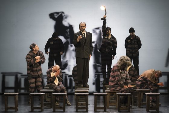 Постановка предоставляет широкий коридор для трактовки. Здесь и аллюзия на земные человеческие мытарства, и память о кровавых процессах прошедшего века. Суд над героем превращается в суд времени над поколением; суд, который держит каждый человек перед собой, перед человечеством в целом и перед высшей силой…