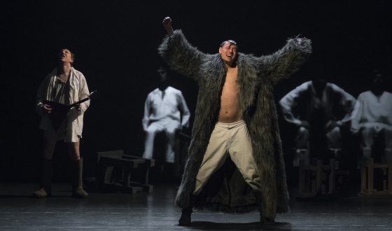 Например, в Маниловке Чичикова встречает эксцентричный помещик (Михаил Шибанов), порхающий на одном пуанте под классическую музыку. Он одновременно и комичен, и инфернален. Жеманные интонации в голосе, неожиданный переход на оперное пение, при этом безжалостное русское обжорство за обедом и подобострастные речи о любви к начальству. Жену Манилова играет мужчина. Отобедав, Манилова буквально вырубается прямо на полу и начинает бесстыдно храпеть. Буффонный образ, созданный Дмитрием Гордеевым, очень органично вписывается в эту пародийную сцену. Но вскоре замечаешь, что в спектакле в принципе нет женщин. Коробочку и Манилову играют мужчины, а все прочие сюжетные линии с барышнями убраны.