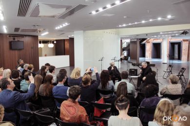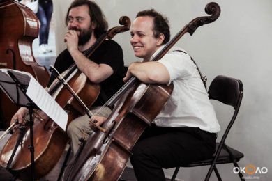 Заключительный концерт-беседа цикла «В свободном переводе/Дивергенция» состоялся на Новой сцене Александринского театра 25 мая. Илья Иофф, Лидия Коваленко и камерный оркестр Дивертисмент в этот раз пригласили на встречу троих гостей — современных композиторов, музыка которых входит в репертуар Дивертисмента, некоторые произведения звучат впервые в его исполнении.