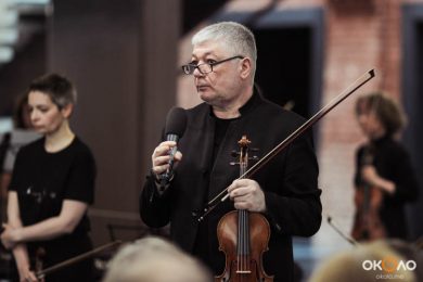 Кульминацией программы безусловно стала беседа Ильи Иоффа, скрипача, солиста и художественного руководителя оркестра Дивертисмент с культовой личностью, композитором Леонидом Десятниковым.
