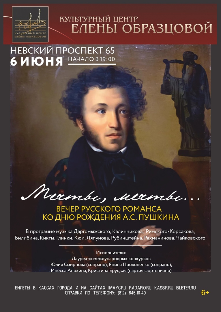 Приглашаем вас на концерт, посвященный музыке, написанной на стихи великого русского поэта.