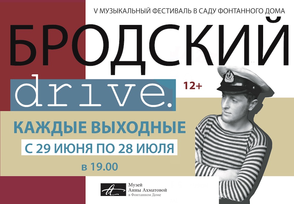 С 29 июня по 28 июля в тени Шереметевского сада в пятый раз собираются именитые джазмены. Организаторы,музей Анны Ахматовой и художественный руководитель проекта – один из лучших джазовых музыкантов России Андрей Кондаков, строят программы, соблюдая единство времени, места и действия, что делает атмосферу «Бродский DRIVE» неповторимой: джазовая импровизация и свобода органично вписаны в строгие рамки, заданные архитектурой и историей знаменитой усадьбы. 13 и 14 июля на открытой сцене «Бродский DRIVE» выступят мэтры.