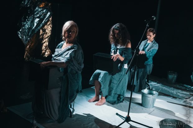 «Холодно, холодно, холодно. Пусто, пусто, пусто. Страшно, страшно, страшно….» — монолог Нины Заречной (Юлия Шишова) из декадентской пьесы, которую они с Треплевым (Александр Худяков) выносят на суд зрителей, красной нитью проходит через весь спектакль. Героям и впрямь холодно – по ходу действия они пытаются согреться, заворачиваясь в фольгированные спасательные одеяла (Аркадина бережно упаковывает Тригорина словно любимую игрушку в блестящую упаковку), но на самом деле жаждут человеческого тепла. А ещё им безумно одиноко.