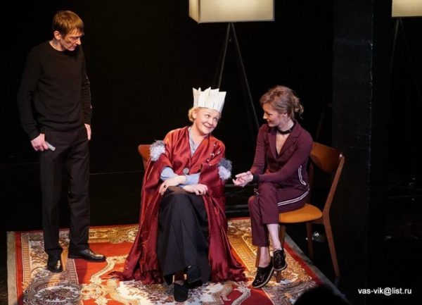 Гера Даниловна, мама Георгия, понимающая все происходящее, то ли специально, то ли от переизбытка чувств в прямом смысле перевоплощается в мать Гамлета. Эта литературная маска становится метафорой, которая помогает женщине открыть сыну правду, Георгию, в свою очередь, открыть глаза и правду принять, а его жене — окончательно решиться и сделать выбор.