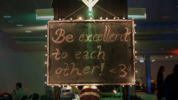 «Все создания, добро пожаловать» — своеобразная многоуровневая игра, которую зритель проходит, позвонив оператору Хаосу. Среди нарисованных птичек, летающей телефонной будки Доктора Кто и веселых компьютерных гениев в костюмах забавных зверей очень верно озвучен замечательный лозунг нового глобального мира: “Be excellent to each other!”. С точки зрения Сандры Тростель, самый лучший способ взаимодействия в наше время, не лечить симптом, удаляя или закрывая данные, а поменяться изнутри, научившись относиться к людям бережно, чутко, с любовью и уважением.