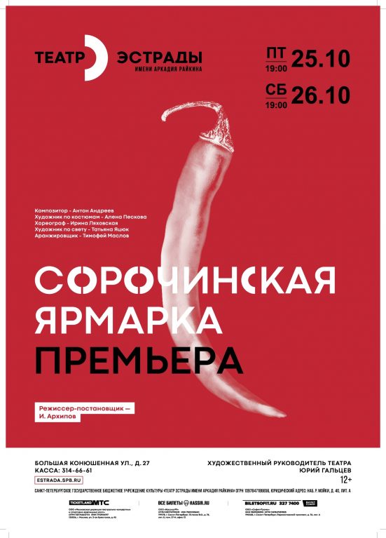 Совсем скоро, 25 и 26 октября, в Театре Эстрады состоится премьера спектакля «СОРОЧИНСКАЯ ЯРМАРКА», в основу которой легли классические сюжеты Николая Гоголя. «Вам, верно, случалось слышать где-то валящийся отдаленный водопад, когда встревоженная окрестность полна гула и хаос чудных неясных звуков вихрем носится перед вами. Не правда ли, не те ли самые чувства мгновенно обхватят вас в вихре сельской ярмарки, когда весь народ срастается в одно огромное чудовище и шевелится всем своим туловищем на площади и по тесным улицам, кричит, гогочет, гремит?» — Н. В. Гоголь. «Вечера на хуторе близ Диканьки». Часть первая.