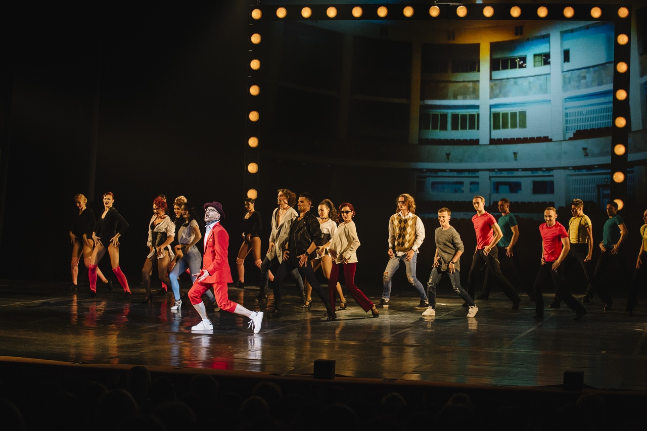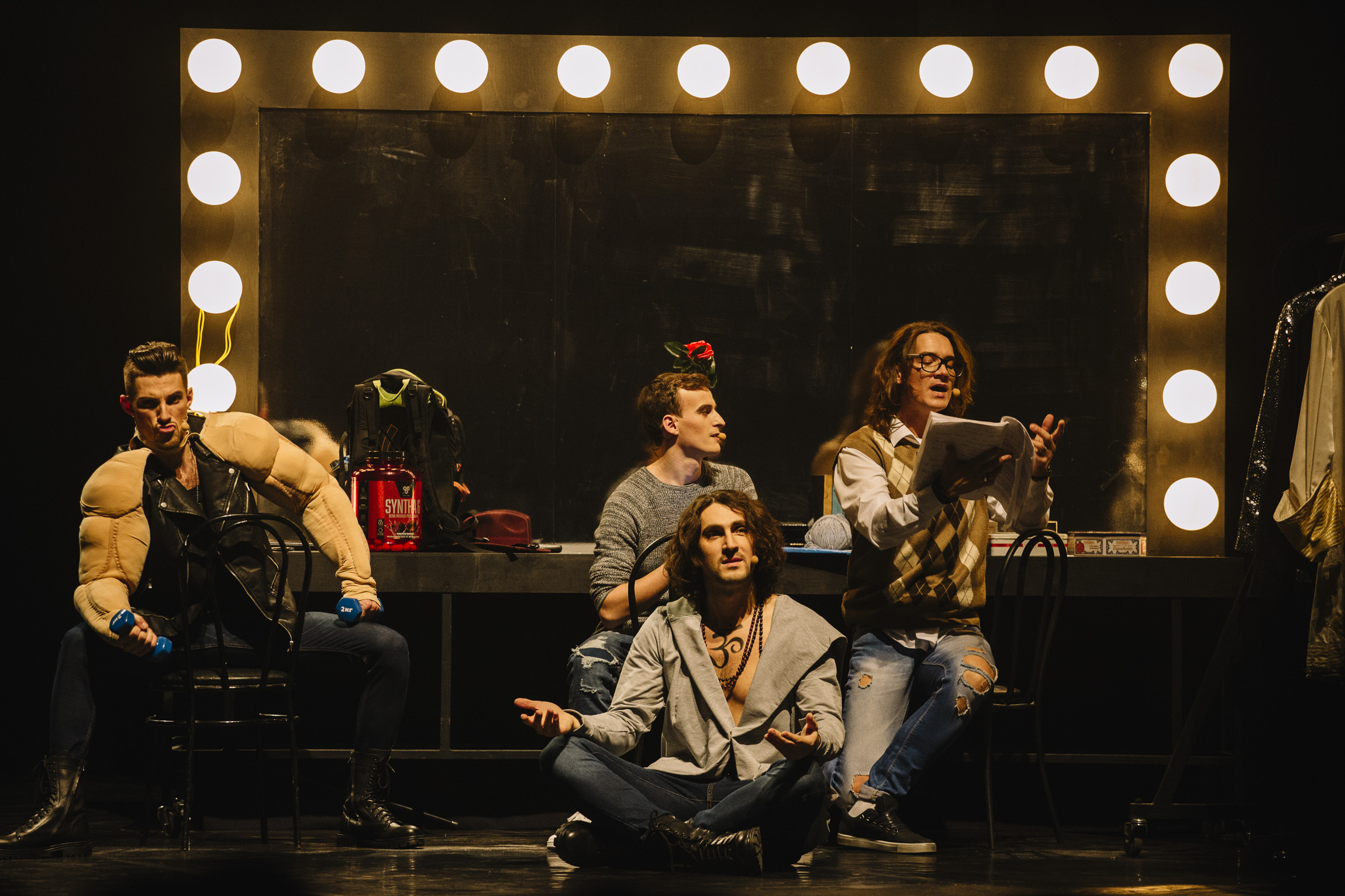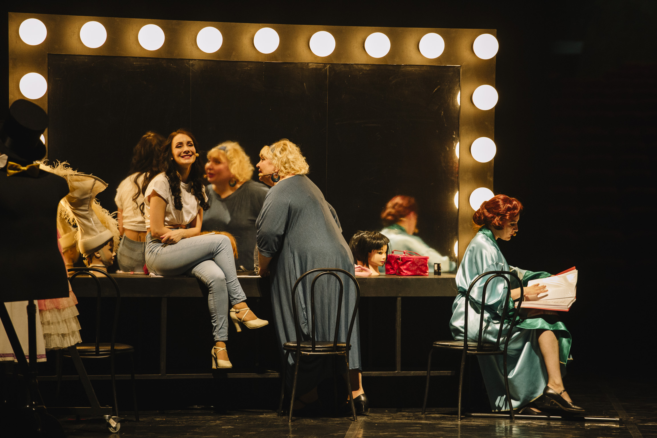 Другое преимущество постановки – грамотное распределение сценического пространства (художник-постановщик – Юлия Гольцова), благодаря которому практически все герои имеют возможность находиться на сцене одновременно. Достигается это за счет условного разделения площади на женскую и мужскую гримерки и собственно сцену, на которой восходящие звезды репетируют номера.