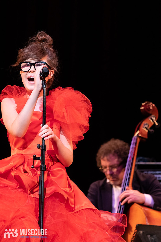Следующее «дитя от джаза» – Ярослава Симонова. Ярославу на сцену выводит помощник, девушка плохо видит – она вся немного дрожит и, кажется, издает звук самой своей вибрацией. У Ярославы невероятный голос и талант, в свои 15 она уже записала альбом и написала несколько песен, одну из них на китайском. Эта песня, слова к которой Ярослава придумала вместе с её подругой Чхень Инь из Китая, также прозвучала на «Джазе в кругу друзей».