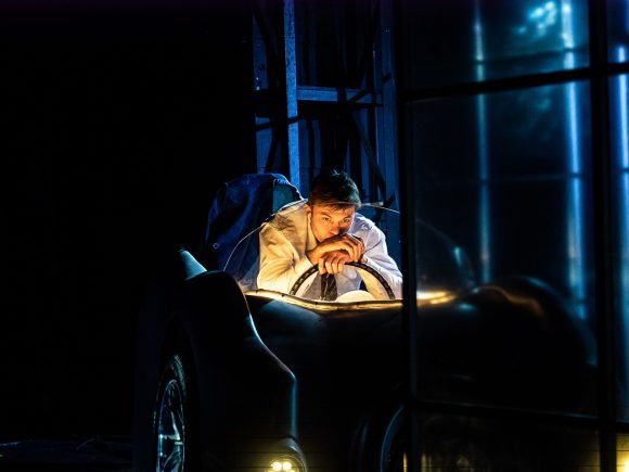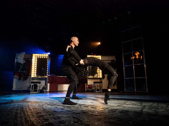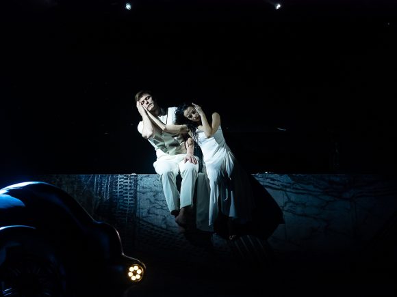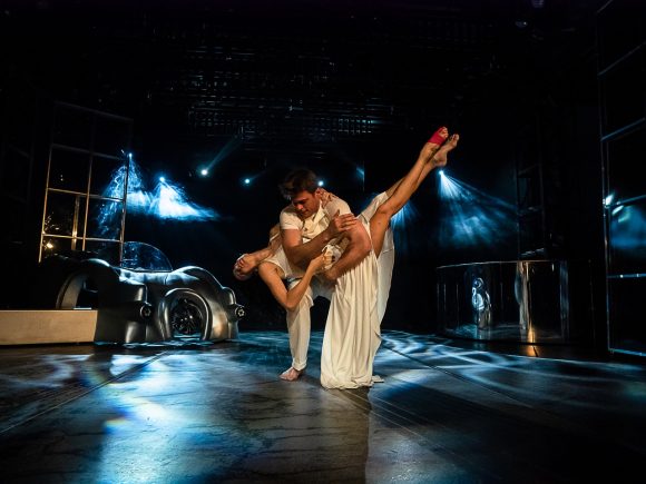В начале спектакля героев отделяет от зрителей прозрачная ширма, которая раздвигается, давая возможность ненадолго заглянуть в мир закулисья. Артём (Иван Батарев) и невидимая до поры до времени Крис (Виктория Литвинова) общаются по телефону, пока он мчится к ней на машине (иллюзию движения создаёт видеоэкран с проносящимися автомобилями, крутящиеся колёса машины и дальний свет прожекторов – фар). Крис делится с Артёмом смешными и невероятными историями из балетной жизни, говорит, что скучает по русской водке, негодует на зрителей, спешащих в гардероб во время поклонов исполнителей, ведь они не просто обижают – они крадут душу артиста. А ещё признаётся, что самый сильный, животный страх испытывает во время триумфа – аплодисментов — вдруг это последние овации в жизни? А ведь главный танец – с тем, кого по-настоящему любишь — ещё не исполнен…