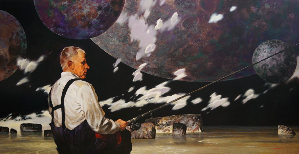 Особую роль в творчестве и в жизни Саунина играет пространство: он осмысляет его и наполняет особым содержанием, работая в мастерской, оно сопутствует ему, когда он на параплане пролетает над Балтикой в Лебяжьем. Выставка «Абстрактное и конкретное» в музее Эрарта — это «полеты» художника во сне и наяву.