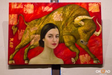 Мария Аристова — художник и, по совместительству, куратор данной выставки, представила два портрета из цикла работ на тему взросления и гендерного различия в мировосприятии. Прообразом одного портрета стала оперная певица Катерина Кованжи. На данную работу снят видеоклип, презентация которого состоится 13 мая в особняке барона Гинцбурга.
