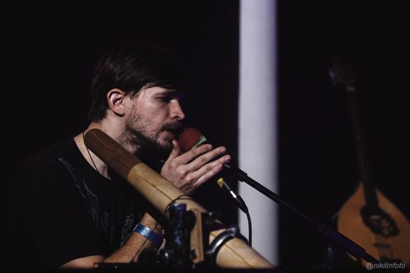 Глаз и слух обывателя узнает флейты, гонг, диджериду, ханг, джамбе, колокольчики и варган. Потом окажется, что флейт много, и они самые разные, есть еще глюкофон, калимбы, бузуки, вислы. Про любой инструмент Андрей после концерта готов рассказать. Говорит, что инструменты приходят от мастеров. В Петербурге перед концертом были подарены сразу два, а в зале присутствовал мастер, который когда-то изготовил ханг. Большинство зрителей инструментами заинтересовались, и после концерта у сцены случился небольшой импровизированный мастер-класс, можно было трогать и расспрашивать про диковинные дудочки, сделанные из цельного куска дерева, трещотки и шумели.