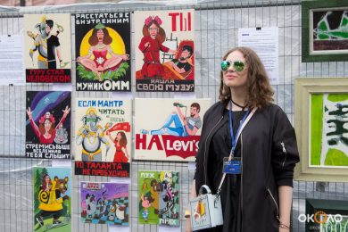 Лиза Бенк -В основном, мои работы ироничные и концептуальные. Я черпаю вдохновение в советском плакате, немецком экспрессионизме и мультреализме. Чаще всего работаю акрилом.