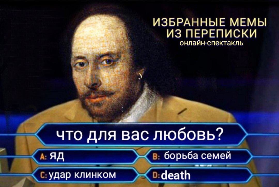 Основанный на пьесе Уильяма Шекспира «Ромео и Джульетта» mobile-specific благотворительный проект «Избранные мемы из переписки» — экспериментальный спектакль. Авторы проекта переносят действие трагедии из Вероны в цифровое пространство, раскладывая классический текст на мемы, созданные специально для проекта. Основное действие спектакля происходит в «городском» чате, участником которого может стать и зритель: в зрительском чате можно также общаться мемами и давать советы героям пьесы. Также зритель сможет выбрать рекомендованную музыку из предложенного трек-листа, найти и включить её на своем устройстве.