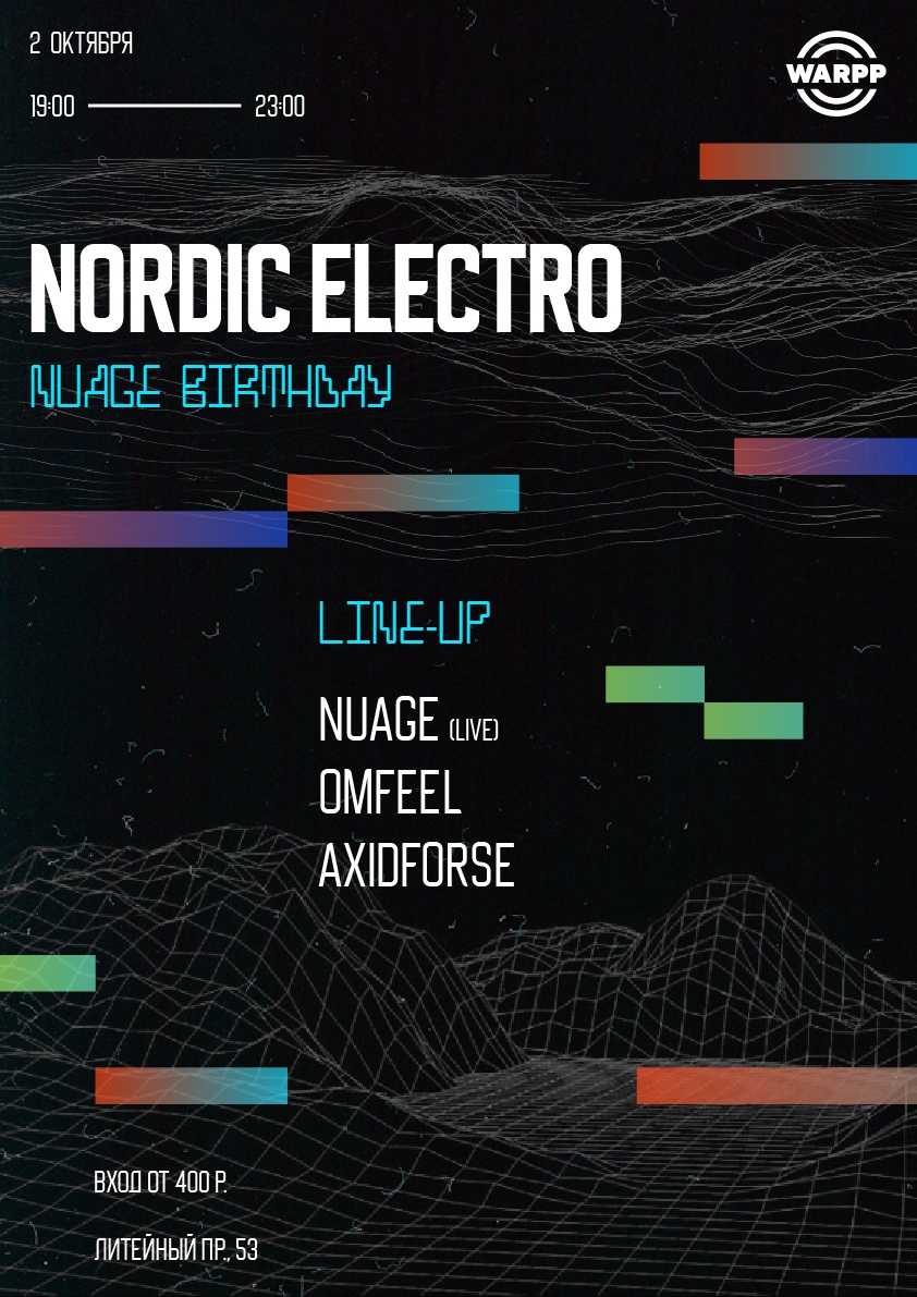 2 октября празднуем день рождения Nuage в клубе WARPP Live. Музыканта поддержат восходящие таланты электронной сцены axidforse и Omfeel, а сам виновник торжества отыграет live сэт, где представит, в том числе, новые работы.