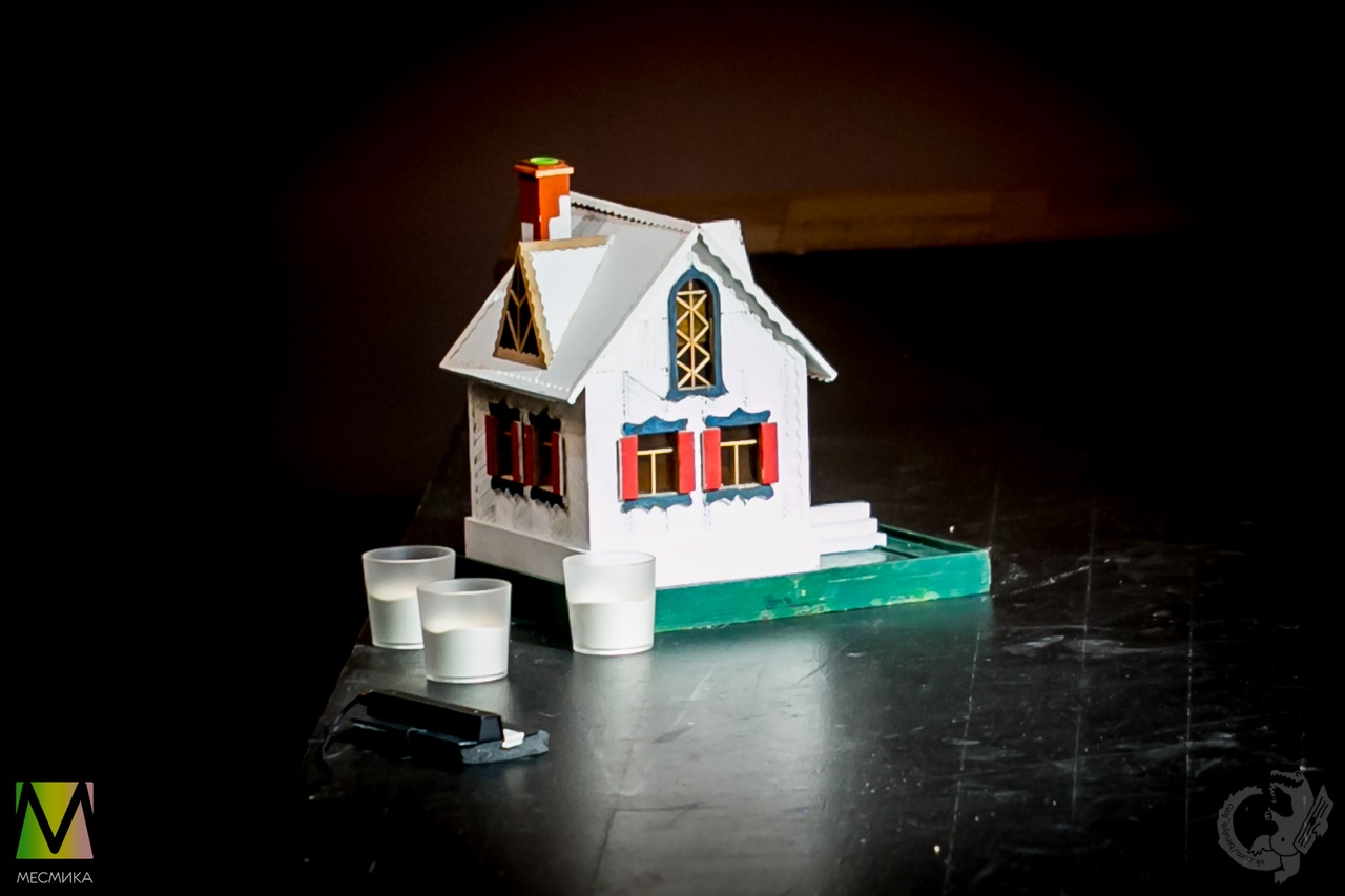 Спектакль скорее драматический, но смотрится легко – в нем достаточно юмора и музыки. Юрий Гальцев сам играет на гитаре и поет песни, который он же написал для постановки «Дома»: «…можно домик постро-о-о-ить, можно домик слома-а-а-ать…». Немного странно видеть художественного руководителя Театра Эстрады в образе «маленького человека», но, нужно признать, ему идет этот образ. Конфликт, который в начале кажется таким же маленьким, как все в пьесе – подумаешь, не купит дом! Что, конец света, что-ли? – к концу оказывается вплетен в гораздо более широкий контекст проблем и вопросов. «Кто ты такой, чтобы все в твоей жизни было так, как ты хочешь?» – слышим мы в адрес главного героя.