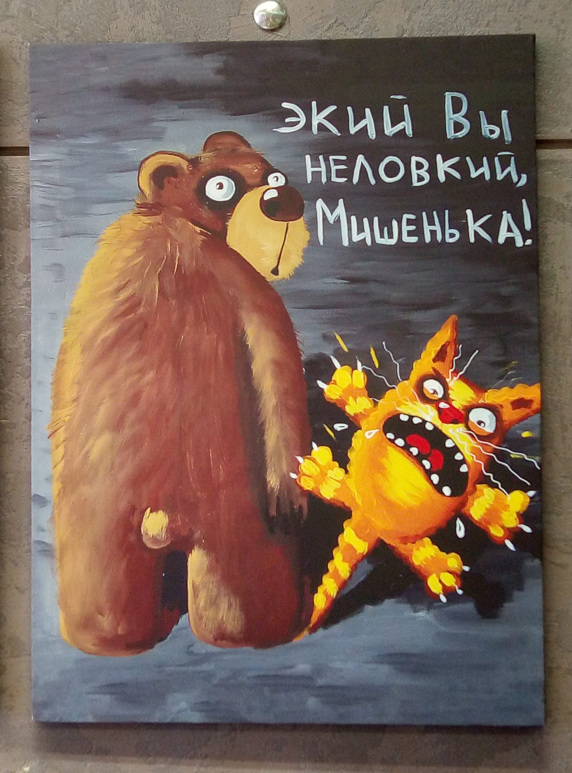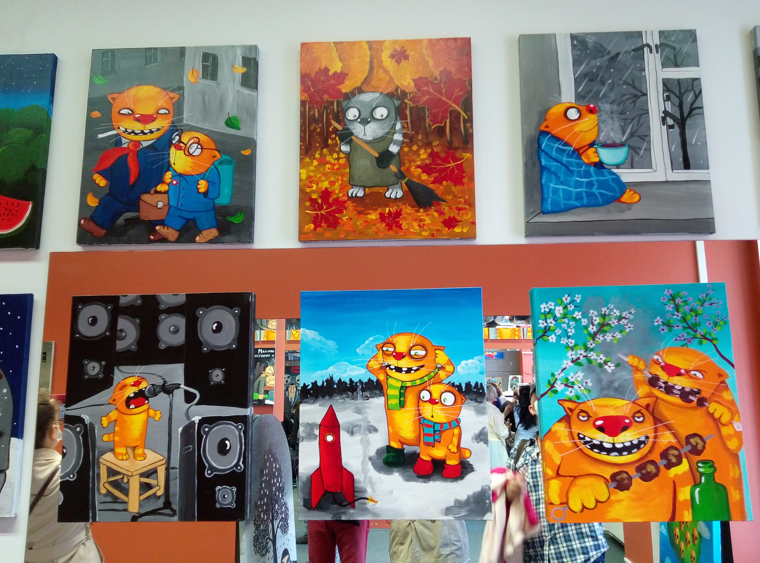 Галерея расположилась по адресу набережная канала Грибоедова, 15. Специально к открытию художник создал серию работ под названием «Культурный кот Петербурга». Из названия понятно, что главным действующим лицо на картинах выступает кот. Хотя стоит отметить, что разбавляют работы и картины с изображением людей.