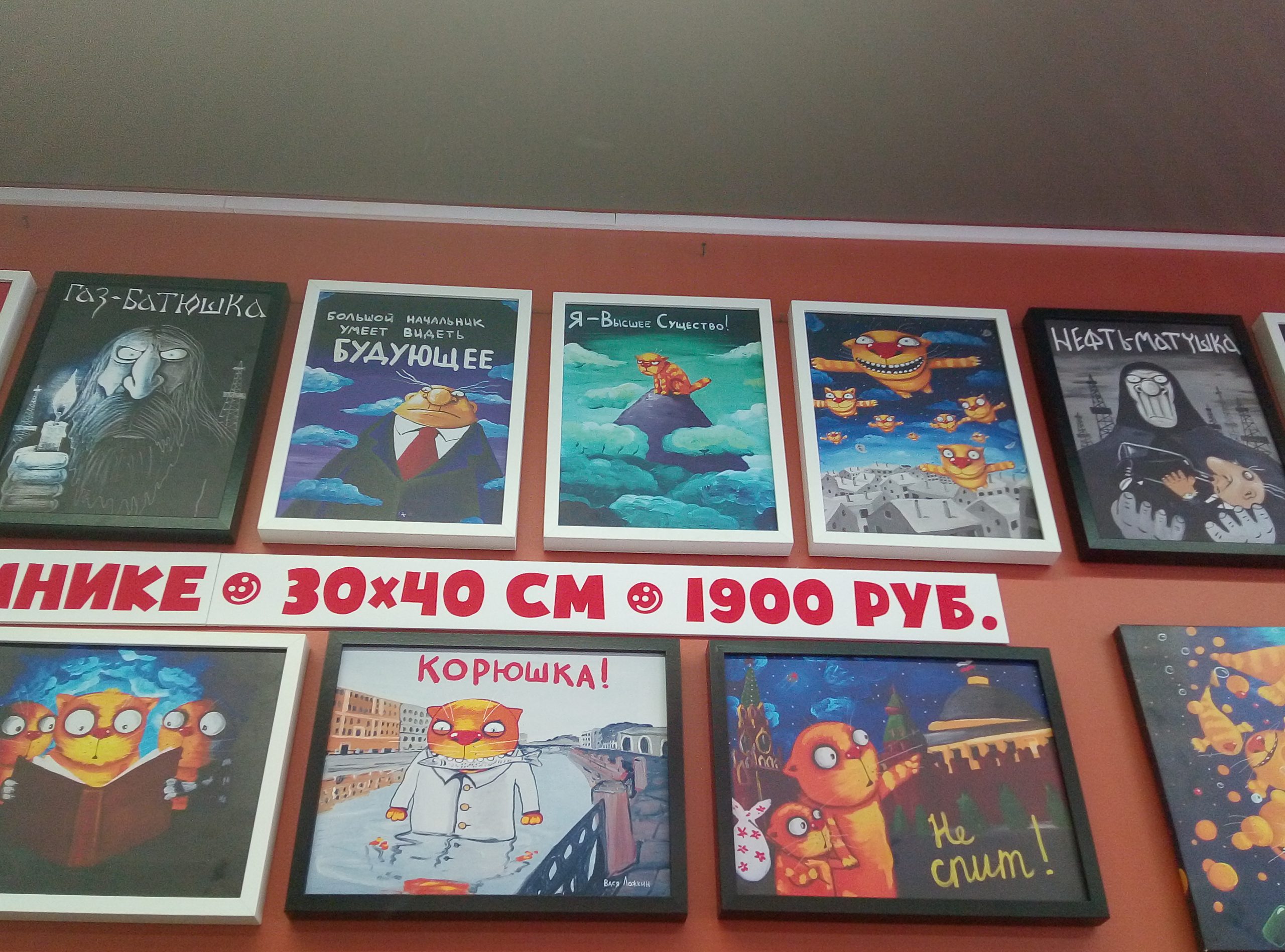 Помимо выставочных залов, в галерее размещен сувенирный магазин, так что у всех поклонников творчества Васи Ложкина есть возможность приобрети сувениры из большого числа вариантов: начина от магнита и наклеек, заканчивая собственно картинами. Цены – разумные, что не может не радовать.