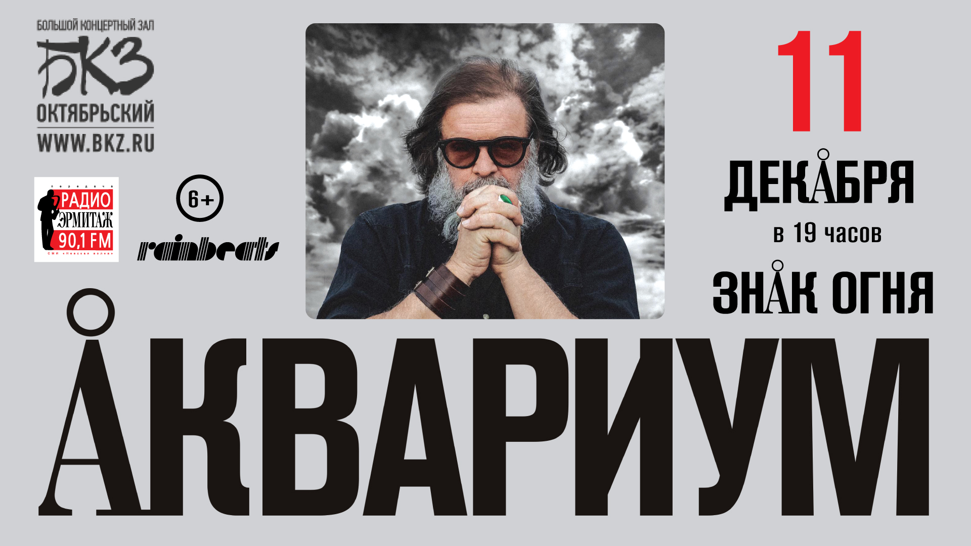 Борис Гребенщиков и «Аквариум» представят в Петербурге свой новый альбом «Знак Огня» 11 декабря на сцене БКЗ «Октябрьский». Поклонники БГ не понаслышке знают, что автор не ограничит программу только исполнением материала своего последнего резонансного альбома, прозвучит ещё много вечного и любимого из обширной дискографии группы, воспитавшей уже несколько поколений интеллектуалов. Да и публика обычно долго не отпускает любимого артиста. Однажды Борис Борисович впал здесь в такой музыкальный раж, что концерт закончился уже после двенадцати, и половина зала едва успела на метро.