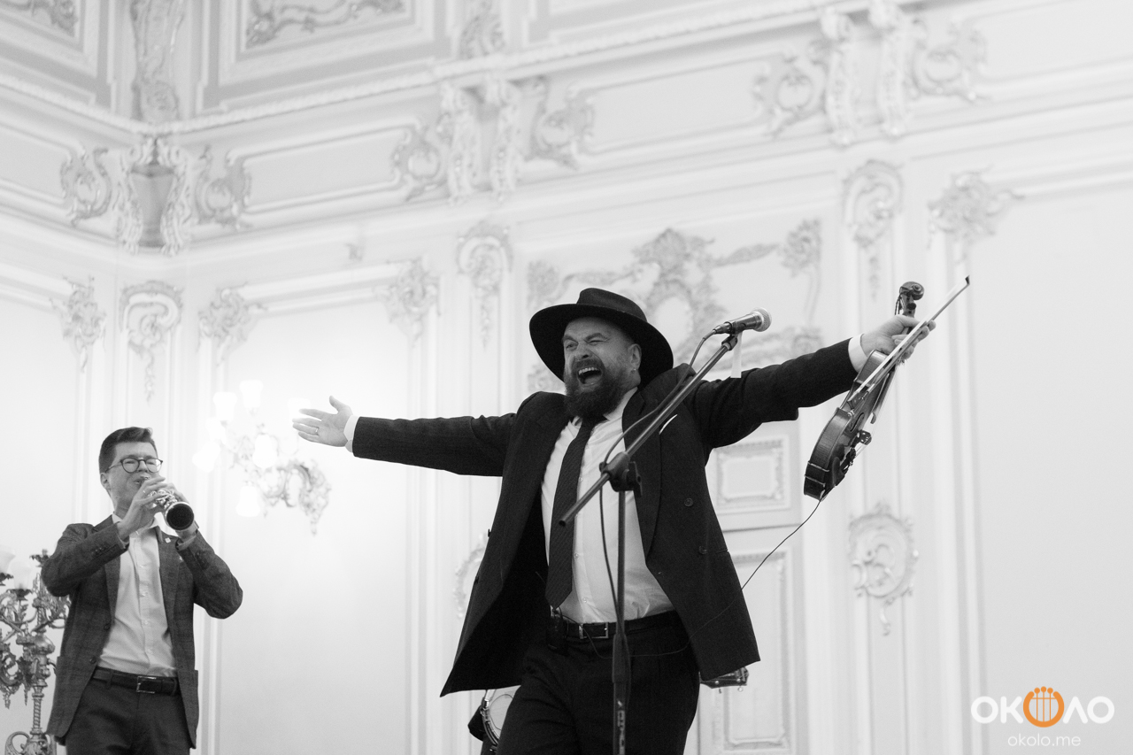 Дмитрий Храмцов: Выступаем где-то раз в полгода! У нас есть специальная филармоническая программа. Даже две или три! Эти стены обязывают: мы не можем здесь какие-то вещи петь, которые играем, грубо говоря, в кабаке. Сегодня у нас балканская и еврейская народная музыка: будут еврейские клезмерские вещи, балканские, молдавские, югославские, сербские, македонские, турецкие.