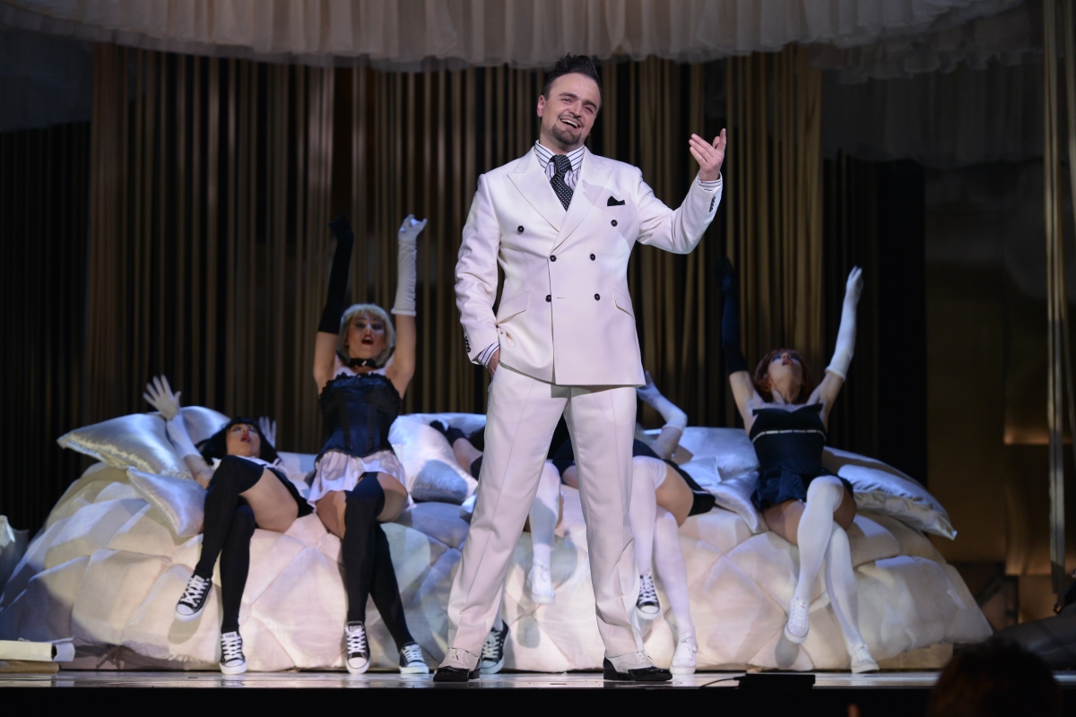 – Знаете, от шаблонности стараюсь отходить во всех исполняемых ролях. Это только на первый взгляд все герои похожи, но если присмотреться, то мало общего найдете между, например, Мистером Иксом и Генрихом Айзенштайном, между Эдвином и Графом Данило, Тассило и Графом Балдуином, Раулем и Принцем Раджами…Я вам так скажу, скорее зрители привыкли к шаблонам и хотят их видеть, опереточная публика ужасно консервативна. Когда мне в Московской оперетте дали роль Мистера Икса, для меня это было неожиданно – на слуху в этой партии были только баритоны. Когда же я заглянул в клавир, то обнаружил, что для баритона переделаны большие куски в финалах, в дуэтах, снято множество высоких нот и тесситурных фрагментов. И даже знаменитую арию Мистера Икса, оказывается, баритоны поют не в родной тональности, а на тон ниже. Я стал слушать западные постановки и обнаружил, что там Мистер Икс практически всегда тенор. Мне стало интересно почему так и вскоре, переведя оригинальный текст арии, я обнаружил, что поет он о другом, нежели в русской версии. Мы, ведь, привыкли, что он «жалуется» на вельмож, на социальную несправедливость, мол, руки ему не подают и всё такое. А в оригинале этого и подавно нет! Мистер Икс поет о том, как стучит его сердце от предвкушения встречи с женщиной, в которую он отчаянно влюблен, с той парой прекрасных глаз, что неизменно наблюдают за ним из зрительской ложи. Вот так! Поэтому и тенор. Лирический герой. И я стал играть своего Мистера Икса, ломая шаблоны и стереотипы, пылким, чувственным, искренним, ранимым. После сцены разоблачения, в той постановке, изгнанный из «высшего света» Мистер Икс оказывался на улице и практически встык шла вторая его ария «Я покину тебя, Париж…». Предваряло ее довольно длинное музыкальное вступление, во время которого на сцене работал клоун, выполнявший акробатические трюки, чтобы утешить и развеселить меня, то есть, Мистера Икса. А я стоял под зонтом, кутаясь в пальто, презрительно брошенное мне лакеем и… плакал. В буквальном смысле плакал. Плакал от обиды, от горькой утраты, от стыда, от отчаяния. И когда начинал петь, голос мой естественным образом дрожал, и я каждый раз мучительно боролся с этой дрожью, но никогда не препятствовал льющимся слезам. Потому что видел своего персонажа именно таким: живым, чувственным и уязвимым. А не статуарным, непоколебимым, словно высеченным из гранита идолом, борцом за справедливость. И спасибо режиссеру и коллегам, что не препятствовали подобной нестандартной интерпретации образа. А, вот, зрители на театральных форумах нередко бывали не согласны и высказывались, что, мол, Мистер Икс на самом деле не такой! Вероятно, они были с ним лично знакомы! (смеется)