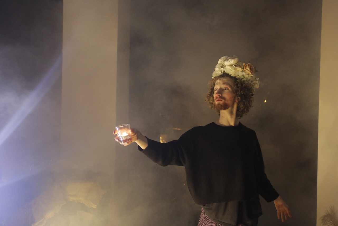 А на спектакле всё было совсем не так. Был огромный номер с зеркалами, были столы, увитые плющом, украшенные свечами и мягкие кресла для гостей. Были хрустальные бокалы и красное вино. Было много смеха и разговоров — никто не отгораживался от других: ни масками, ни сценой, ни кулисами.