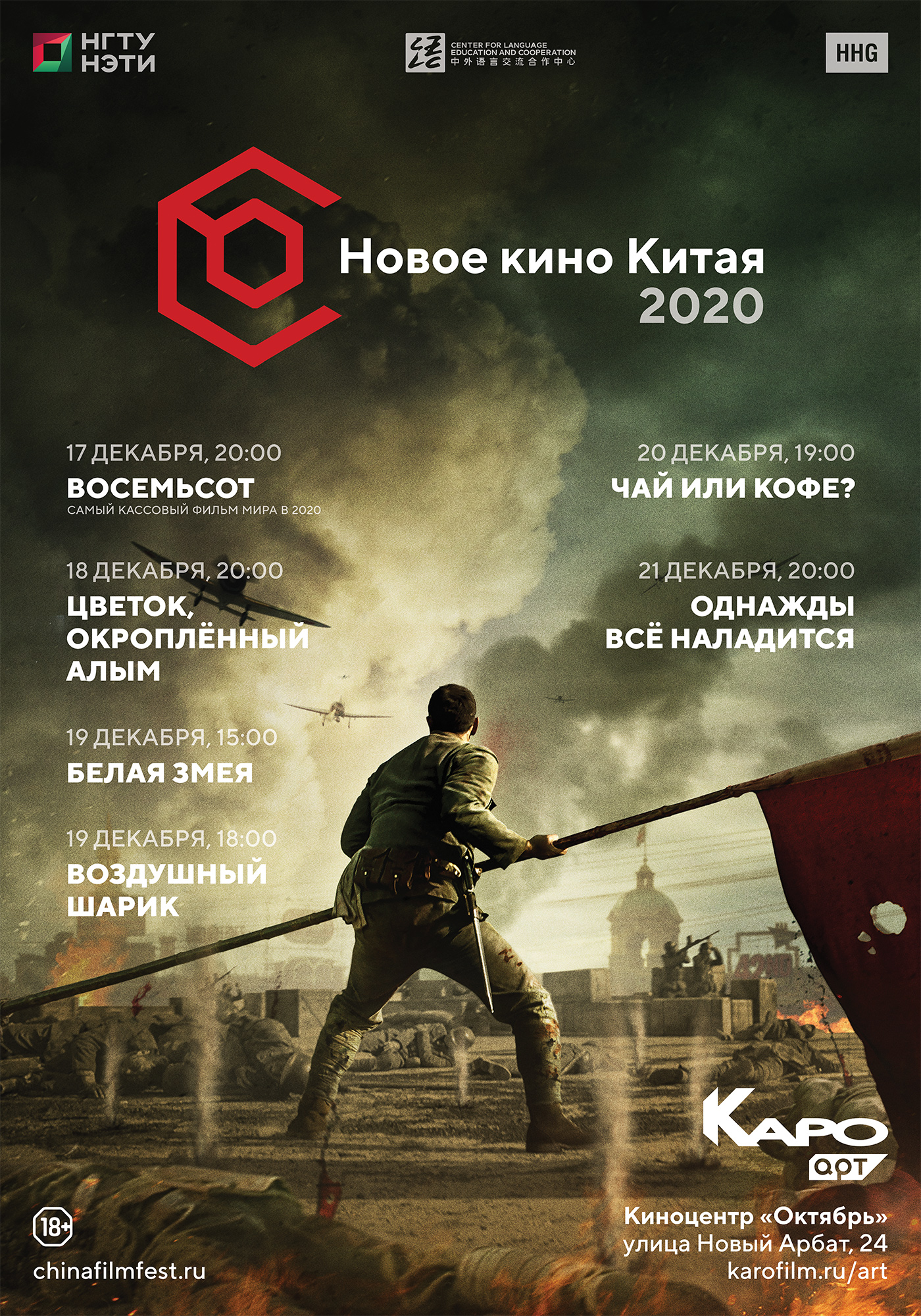 Фестиваль «Новое кино Китая» откроет самый кассовый фильм уходящего года в мире — военная драма «Восемьсот». Также российский зритель сможет увидеть на большом экране лауреатов и участников европейских фестивалей, анимационную ленту «Белая змея» и зрительские картины, ориентированные на широкую аудиторию. Фестиваль стартует во второй раз и по традиции пройдет в трех городах в Москве и Санкт-Петербурге с 17 декабря, в Новосибирске с 20 декабря.