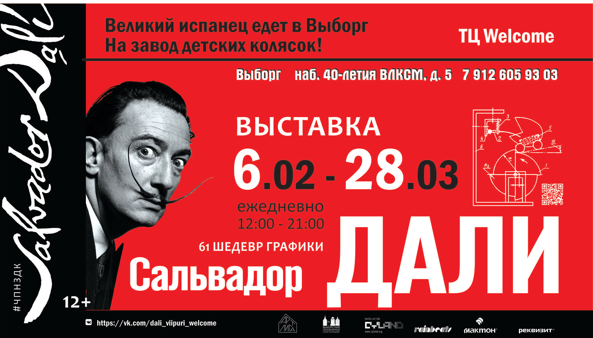 6 февраля в Выборге открывается выставка «Сальвадор Дали. Тайнопись» — шестьдесят оригинальных цветных графических произведений мэтра, собранных от частных коллекционеров и галерей Европы и Америки. «Кармен», «Приключения Алисы в Стране Чудес», «Далинианские лошади», иллюстрации-ксилографии к повести Педро де Аларкона «Треуголка» и триптих «Трилогия любви».