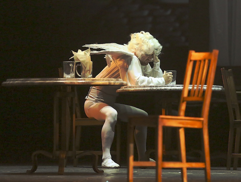 Роль Генри, открывшего Дориану дно общества, исполнил Сергей Коровин. В какой-то момент складывается ощущение, что это сам Оскар Уайльд гордо ходит по сцене и произносит свои знаменитые цитаты о том, что не исполнять желания грешно, женщины – декоративный пол, влюбленность начинается, когда человек обманывает сам себя, а заканчивается обманом другого. Ироничный текст украшает постановку, а дополняют ее такие комические элементы, как Амур рядом с первой возлюбленной Дориана или надувные круги на талиях танцоров.