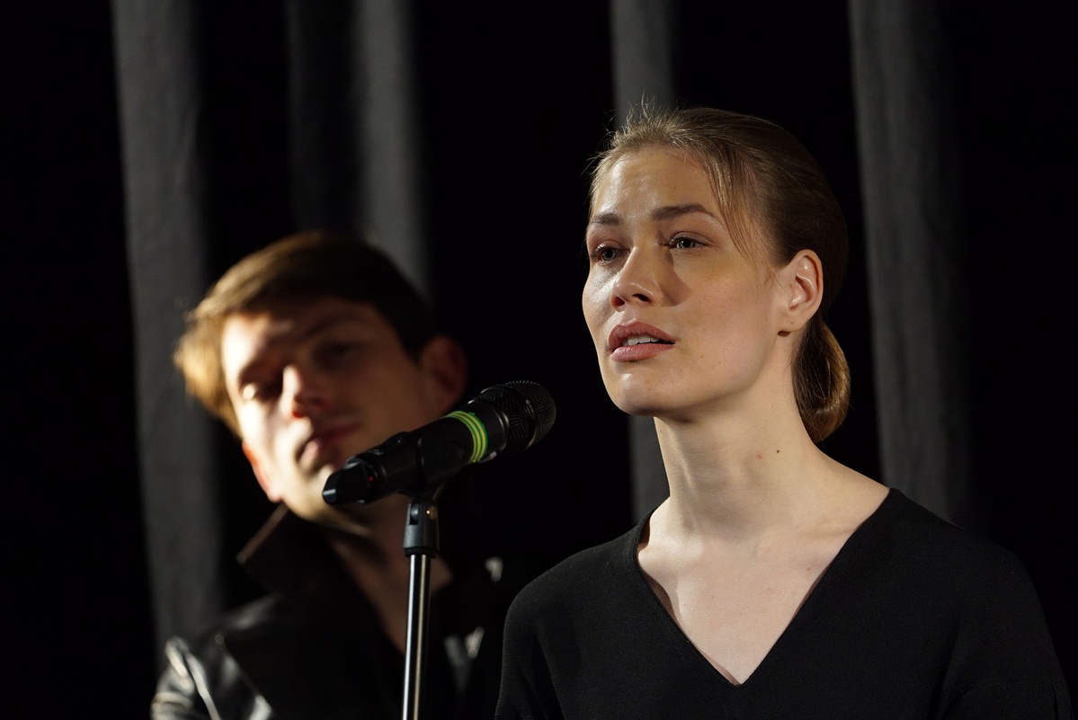 Спектакль поставлен в лучших традициях литературного театра — сцена, свет, микрофоны и минимальная сценография. Актеры — проводники поэтического слова, одетые в черное, без лишних нарядных элементов рисуют новую вселенную. В сотворении поэтического мира участвует и молодая гвардия, и мэтры сцены Малого драматического.