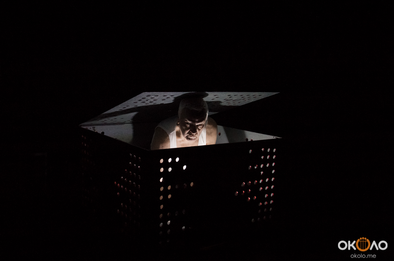 Делиться впечатлениями потом особенно интересно, это мне не избалованные культурными событиями театральные журналисты. В первой сцене, где из ящика вылезает человек в медвежьей шапке и рассуждает на тему: “И я, и весь этот мир – всего лишь чья-то мысль”, мой спутник не понимает примерно ничего, а я тоже примерно ничего, но узнаю и раздумываю: “Это Пелевин сейчас или Кацагаджиев?”