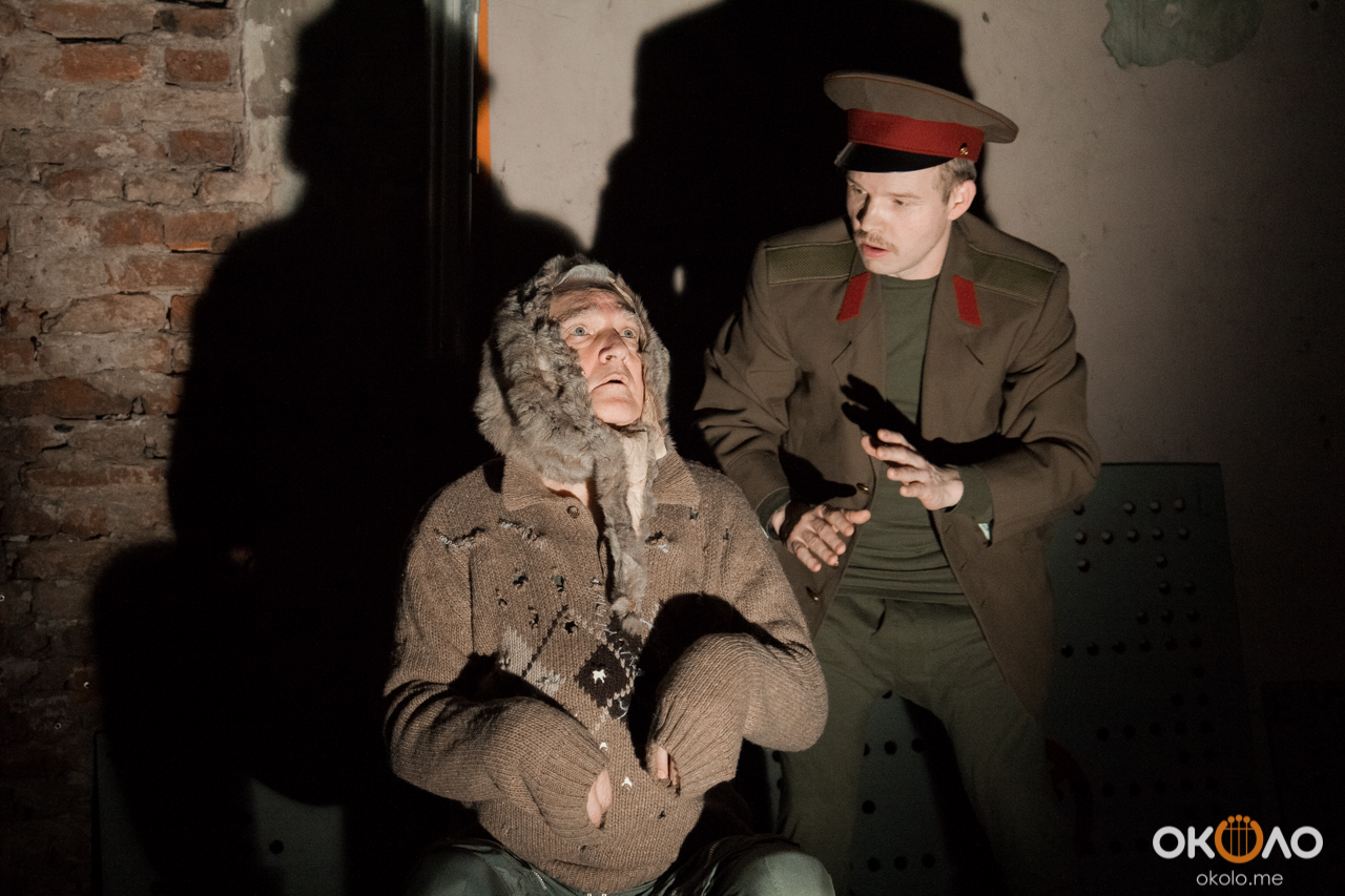 Когда я после спрашиваю о сюжете, мой спутник понимает режиссерскую задумку верно: юноша оказывается в космической программе, где Союз хочет утереть нос американцам, высадившимся на Луне, и отправить собственный автоматизированный луноход. Но автоматика — фикция для народа, на самом деле, внутри ракеты живые люди выполняют действия механизмов. Омон совершил подвиг, нажал нужные кнопки, советский народ услышал репортаж, как радиобуй, установленный на лунной поверхности, передал в космос зашифрованный сигнал “Мир.Ленин.СССР”. Но в момент совершения подвига Омон понял, что находится на Земле внутри декораций. Когда за ним пришли и обещали Орден — убил визитеров и застрелился сам. Надо отдать должное режиссеру, сделать спектакль понятным для несведущего зрителя — большое мастерство. Например, он убрал персонажа Митька и всю сопутствующую историю о его дружбе с Омоном и регрессивном опыте, что могло усложнить спектакль во много раз. Зато красиво и понятно вывел на первый план драму о мифе и бессмысленном героизме — сцену в учебке, где молодым курсантам с картинками объясняют, что есть настоящая советская автоматика, или выступление перед курсантами егеря Попадьи, рассказывающего о том, как он изображал медведя на охоте для правительственной верхушки.