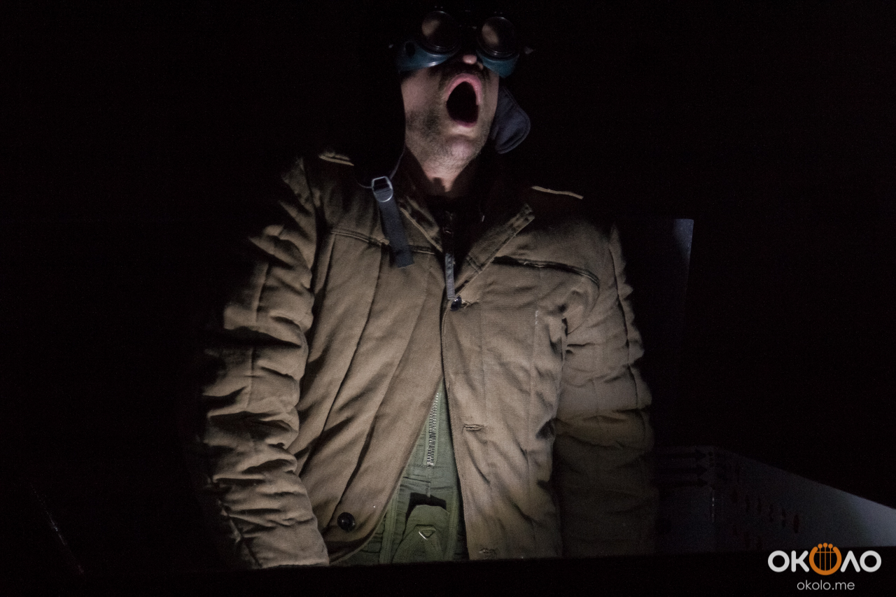 Когда актеры рассказывают историю мальчика с именем Омон, который мечтал стать летчиком и попал в Зарайское училище, где вдруг его взяли в космонавты и промывают мозги на тему совершения подвига для Родины. Когда актеры меняют роли с курсантов на начальников, переодеваясь прямо на сцене, я думаю: “О, я знаю этот режиссерский ход, как изящно! Пятью актерами показал целую толпу! А как эстетически прекрасно доски с дырками из декораций превращаются в щиты, стулья, столы и кровати!” Мой спутник думает: “Актеров в театре не хватает? Почему одни и те же люди играют много ролей и не уходят переодеваться?”